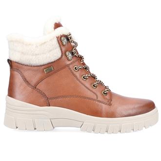 Повседневные ботинки Remonte арт. D0E71-24. Зимний сезон. Фасон - Повседневные ботинки. Застёжка - шнуровка,молния. Каблук - каблук низкий. Материал - натуральная кожа,экокожа. Материал подкладки - натуральная овечья шерсть,мембрана. Вид стельки - съёмная шерстяная стелька с фольгой. Высота каблука - 4,5 см. Толщина подошвы - 3 см. Высота обуви с каблуком - 15 см.