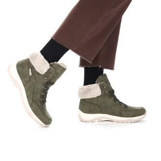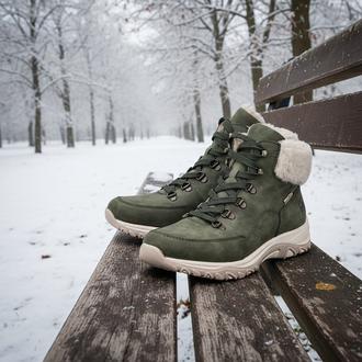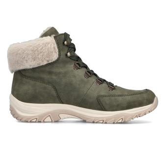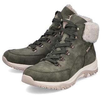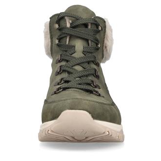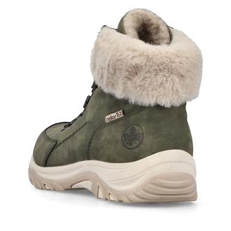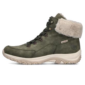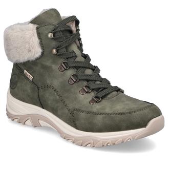 Повседневные ботинки Rieker арт. M9610-54. Зимний сезон. Фасон - Повседневные ботинки. Застёжка - шнуровка. Каблук - спортивная подошва. Материал - экокожа,текстиль. Материал подкладки - искусственный мех. Вид стельки - съёмная велюровая стелька. Высота каблука - 3,4 см. Толщина подошвы - 2,5 см. Высота обуви с каблуком - 14 см.