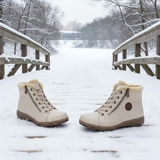Повседневные ботинки Rieker арт. Z0121-60. Зимний сезон. Фасон - Повседневные ботинки. Застёжка - шнуровка,две молнии. Каблук - танкетка низкая. Материал - экокожа,текстиль. Материал подкладки - искусственный мех. Вид стельки - стелька велюр + войлок. Высота каблука - 3,4 см. Толщина подошвы - 2,5 см. Высота обуви с каблуком - 15 см.