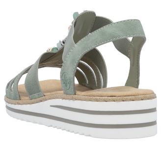Босоножки Rieker арт. V0649-52. Летний сезон. Фасон - Босоножки. Каблук - танкетка низкая. Материал - экокожа. Материал подкладки - искусственная кожа. Вид стельки - текстильная стелька. Высота каблука - 3,4 см. Толщина подошвы - 1 см.